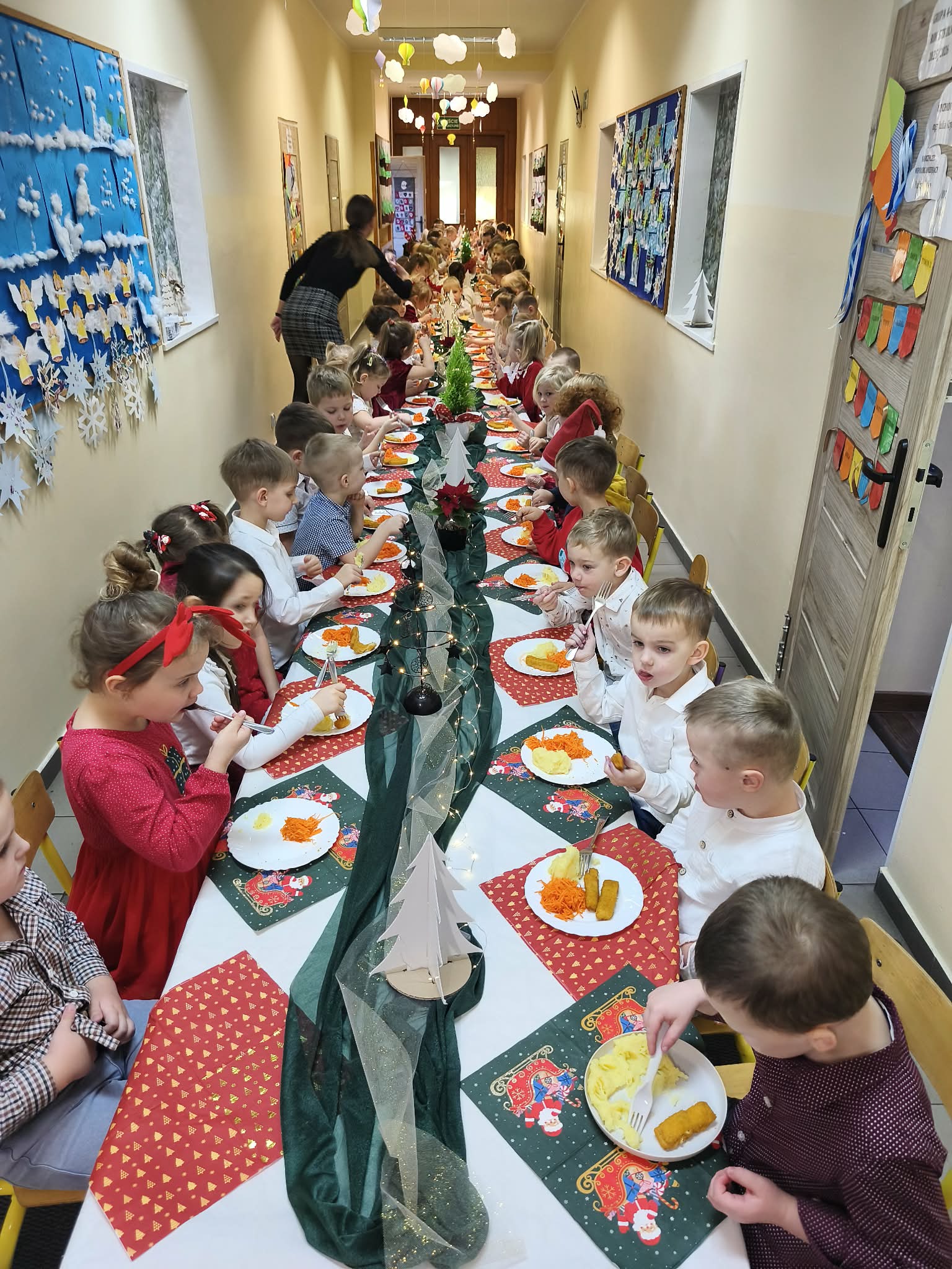 19 grudnia w naszym przedszkolu odbyła się wyjątkowa Wigilia dla wszystkich grup. Pomimo wyzwań mijającego roku, z radością mogliśmy zakończyć go wspólnie, przy tradycyjnym świątecznym stole, w atmosferze ciepła i wzajemnego wsparcia.